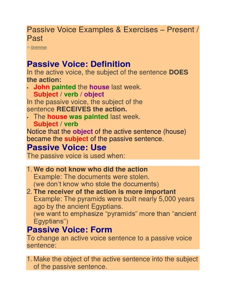 Functions of the passive voice the passive voice is used to show interest in the person or object in other words, the most important thing or person becomes the subject of the sentence. The most voted sentence example for passive is he took in her features with p. A passive sentence is a sentence in which the subject does not perform the action of the verb. In contrast, the sentences someone pulled down the tree. Personal passive simply means that the object of the active sentence becomes the subject of the passive.